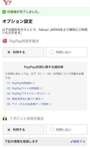 Yahoo!ウォレット登録