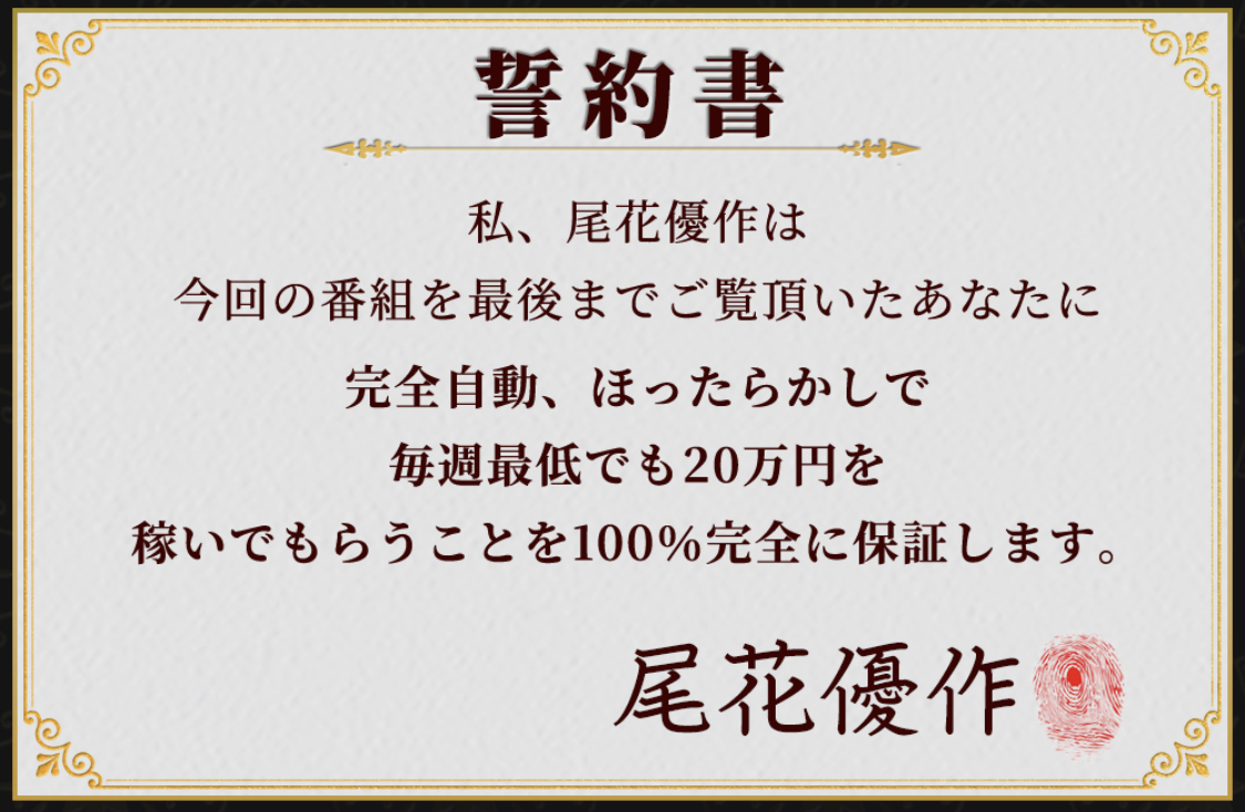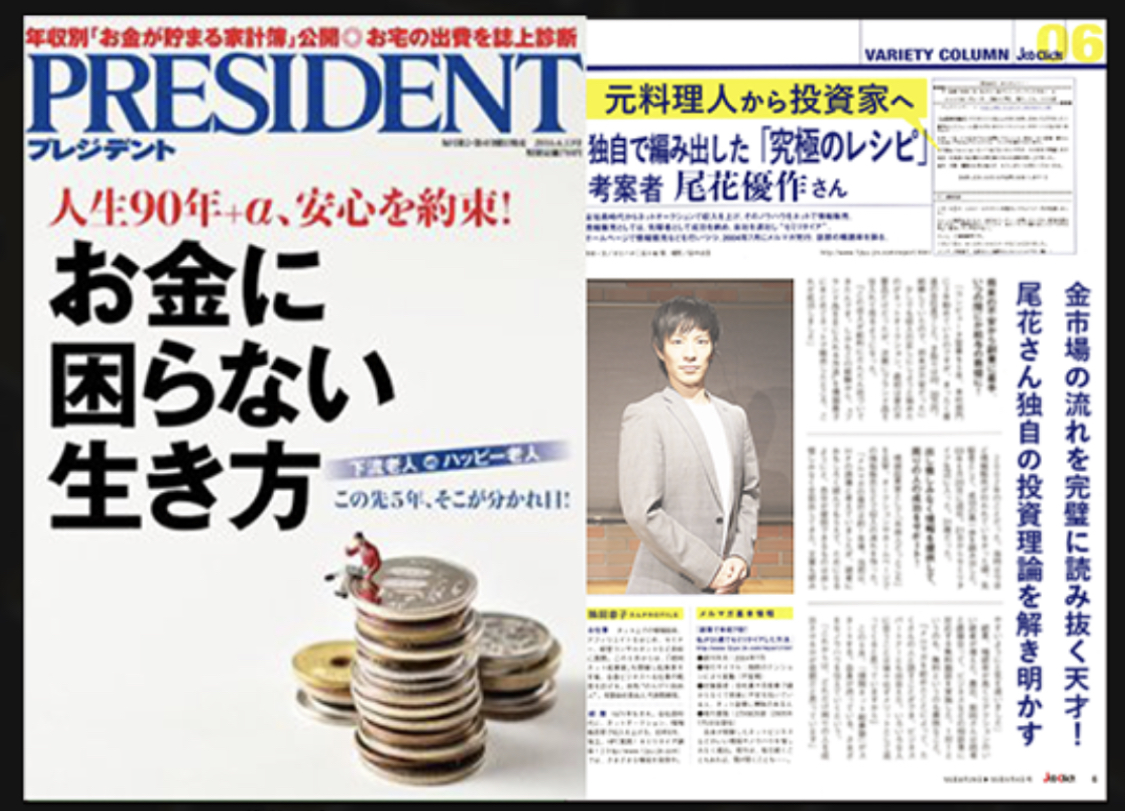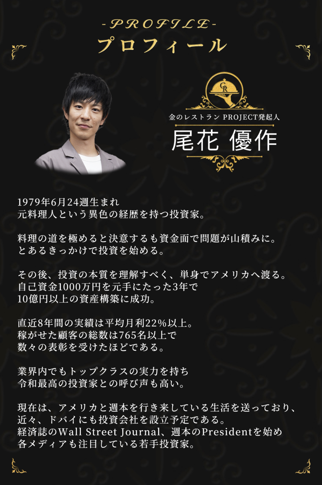 LPには尾花優作氏の誓約書と共にプロフィール紹介があり、取り上げられたらしい経済情報誌などの画像があります。